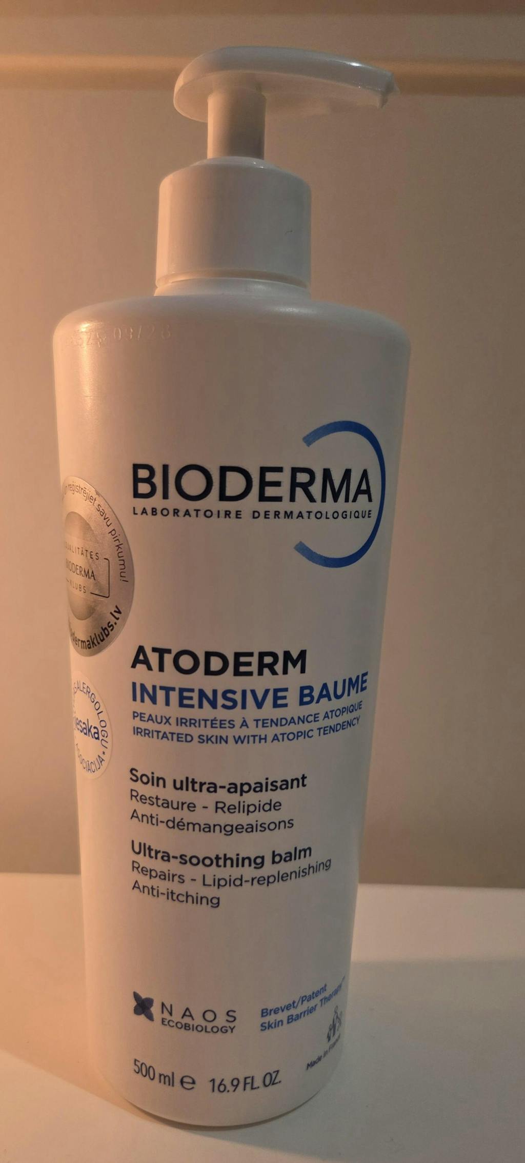 BIODERMA Atoderm Intensive Baume palsam 500 ml – leevendab intensiivselt sügelust ja taastab lipiide. Äärmiselt rahustav ja toitv.